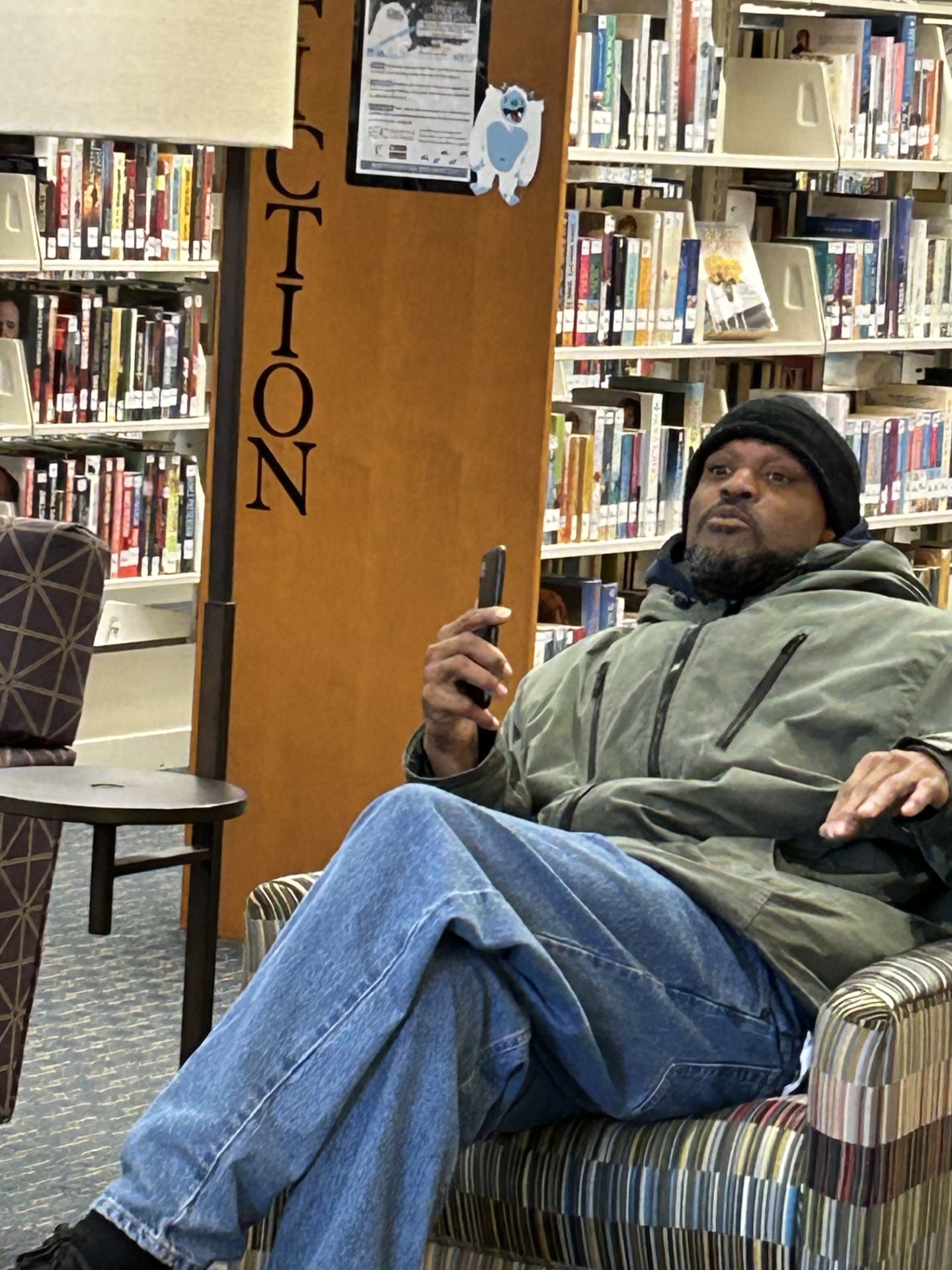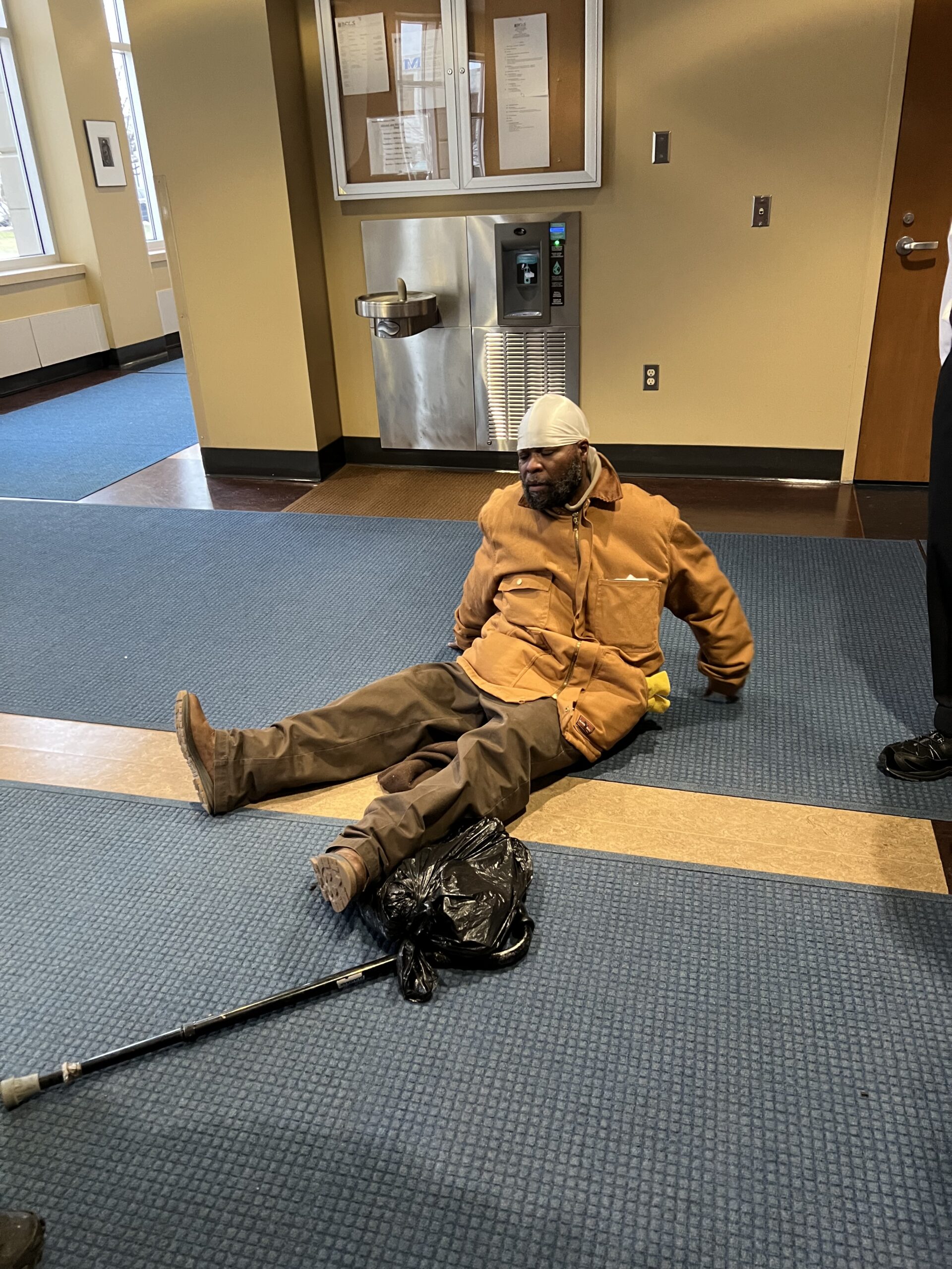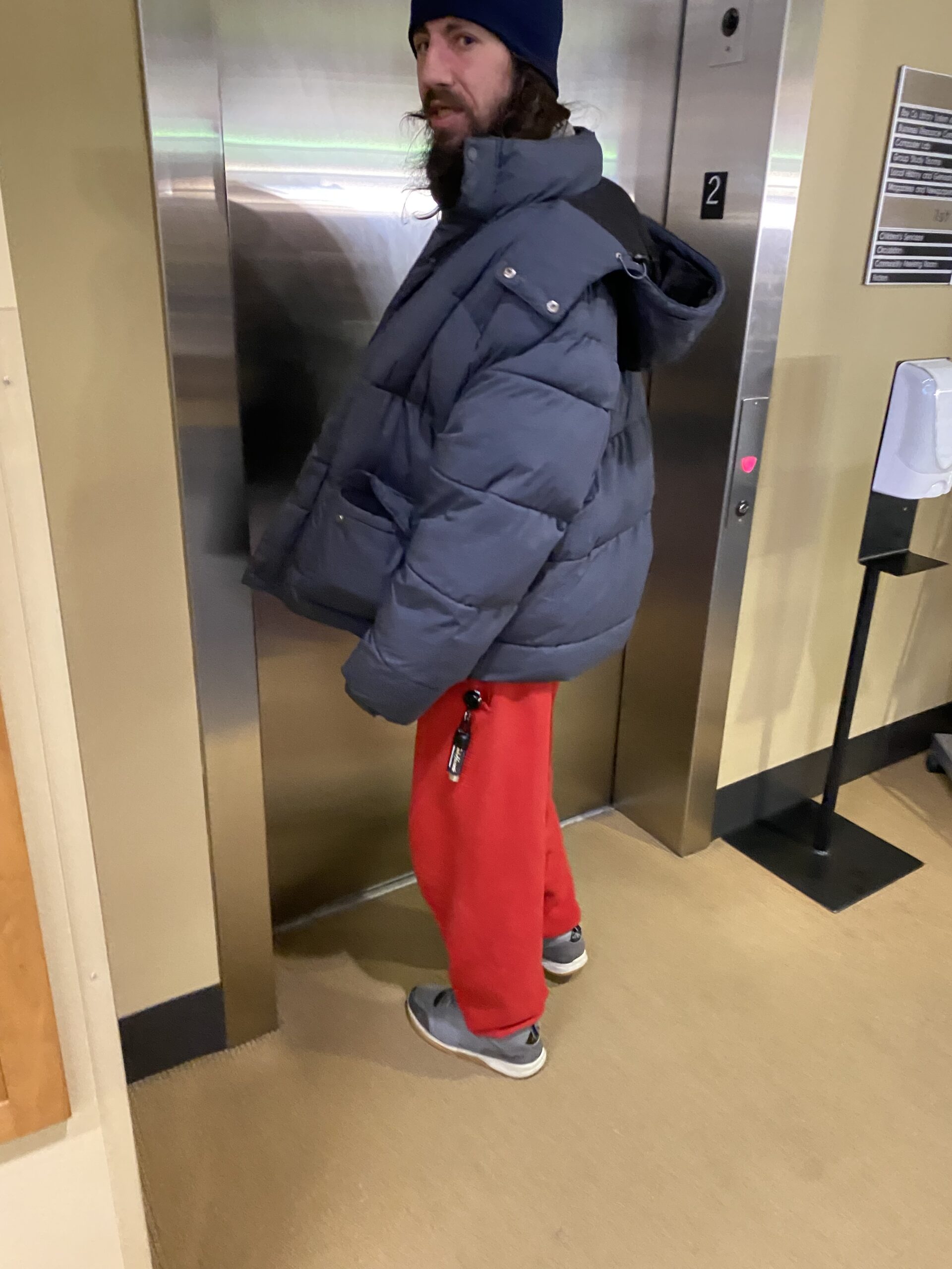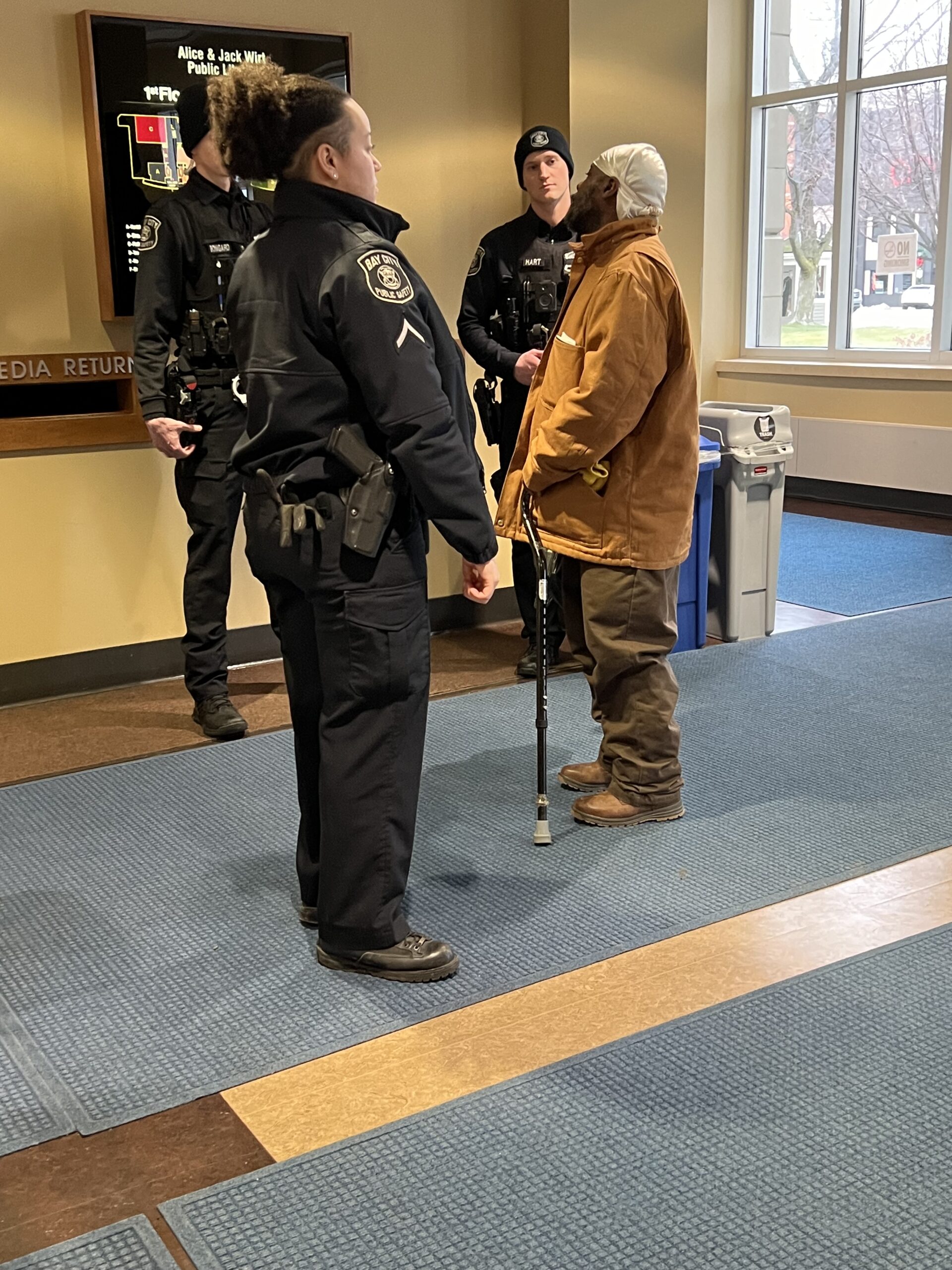 Incident Description The couple in the attached photo left their bags unattended. When staff discovered them and looked inside tobacco and open alcohol bottles were discovered inside. The couple asked about their items when they returned inside the library. They were told the library has a strict no alcohol and tobacco policy and they would not be allowed back in the library for 30 days. They denied they drink alcohol and were not happy about leaving due to their language. If you see them back before April 28 please remind them they are not allowed on BCLS property. Unfortunately we do not know their names, but most staff is familiar with them as they tend to be here every day/all day.Thank you - Kirsten Wellnitz Managing Librarian
