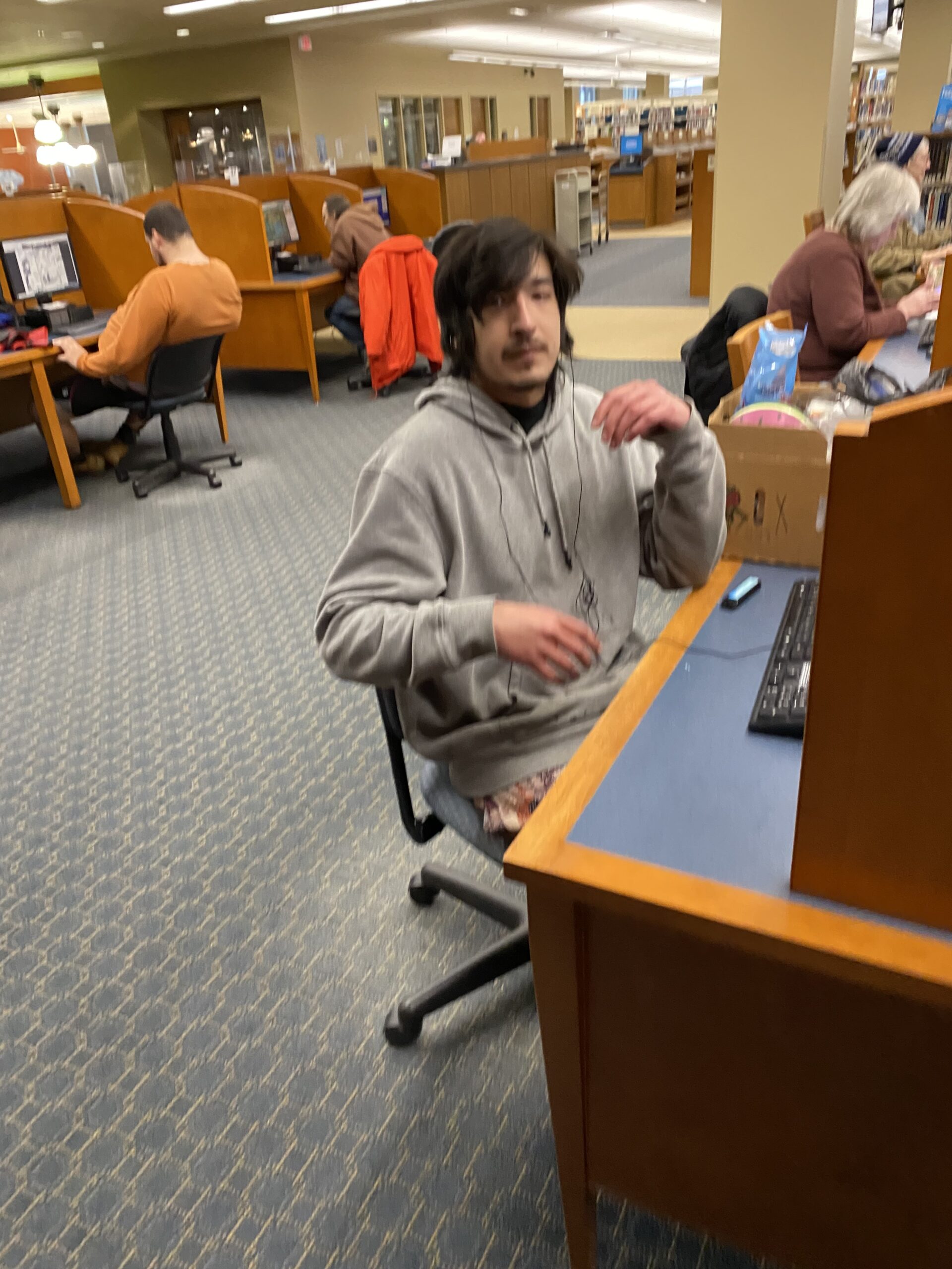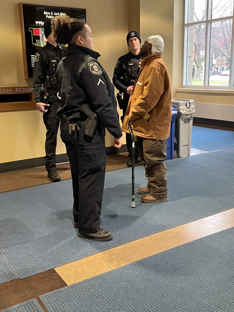 Incident Description banned from BCLS libraries for abusive language and making threats to staff. His name is Robbie Poirier. We've had problems with him years ago and he recently returned to the area. Additional Information 4/26/24 : Robbie Poirier entered the building yesterday and the security guard reminded him he is not allowed on library property. Today he was on the cannon in the photo attached and reminded again that he is not allowed on our property including the park area. The man sitting next to him became aggressive with the security guard attempting to put hands on him. He has been reminded several times about our rules on sleeping, etc. If he sleeps or becomes aggressive verbally or physically with any staff please ask him to leave and call 911 if necessary. UPDATE 4/29/24 : This gentleman, Travis, needs to be told he's suspended. Security guard had to tell him to leave again (same day) was outside on our property. Suspend him for a week if he comes in or let me know if I'm in the building and I'll let him know. Update 5/1/24: He was in again last night claiming he thought it was Friday. If Travis should come back in before tomorrow please tell him is now suspended for 1 month. Update 5/2/24 : Travis was back on our property with alcohol and tobacco - he was told he is not allowed on our property until June 2. If you see him on BCLS property again before June 2 please add on another month. Update 5/15/24 :Robbie Poirier was informed again that he is not allowed on our property. He was very agitated and did not want to leave. I said the police could be called to sort this out and he then moved to the sidewalk. If you see Robbie on our property again please inform him the police will be called if he does not leave. If he refuses please call 911. UPDATE 2/14/25: Patron Robbie Poirier was in today. He apologized for his past behavior and was remorseful for his previous actions. He wanted to talk to someone about the opportunity to be able to utilize the library again. We had a good conversation and I said I would allow him a second chance, but he was not to verbally threaten or abuse staff in any way or he would be asked to leave. I am going to be cautiously optimistic that he will follow through with his promise. He is on the left in the attached photo. His upper teeth are black and he still has the same hair and coat. If he should cause any issues please let me know immediately. 4/11/25 UPDATE : Robbie made a scene today yelling & screaming profanities in the main hallway when asked to leave for the day due to having tobacco products out in the open. He was told he is not allowed on BCLS property for a month due to this. He is welcome to come back on May 11. He did say he was going to Sage, but I reminded him he is not allowed at any Bay County Library property. Attached is an older photo of him. He is on the left.